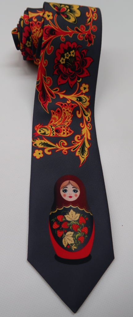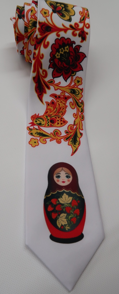 Галстук мужской "ПОДАРОЧНЫЙ" имеет длину 155 см. Это галстук ручной работы, с оригинальными узорами хохлама или гжель, нанесёнными на ткань методом сублимации. При его изготовлении используются специальные прокладочные материалы, что позволяет завязывать более крупный узел. Прекрасно подходит в качестве подарочного варианта.