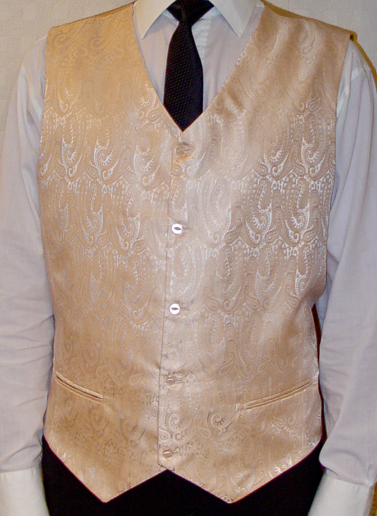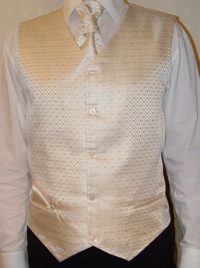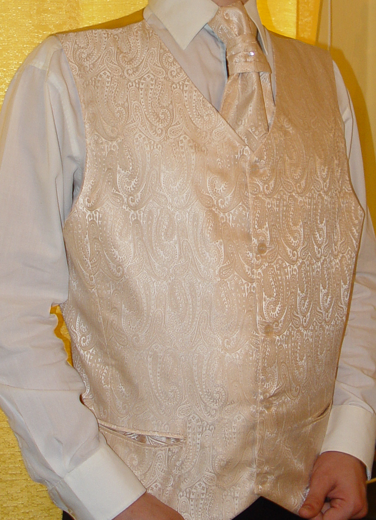 Жилет мужской, текстура бежевые «огурцы», галстук «Торжество» Жилет мужской, текстура бежевые «огурцы», галстук «Селёдочка»