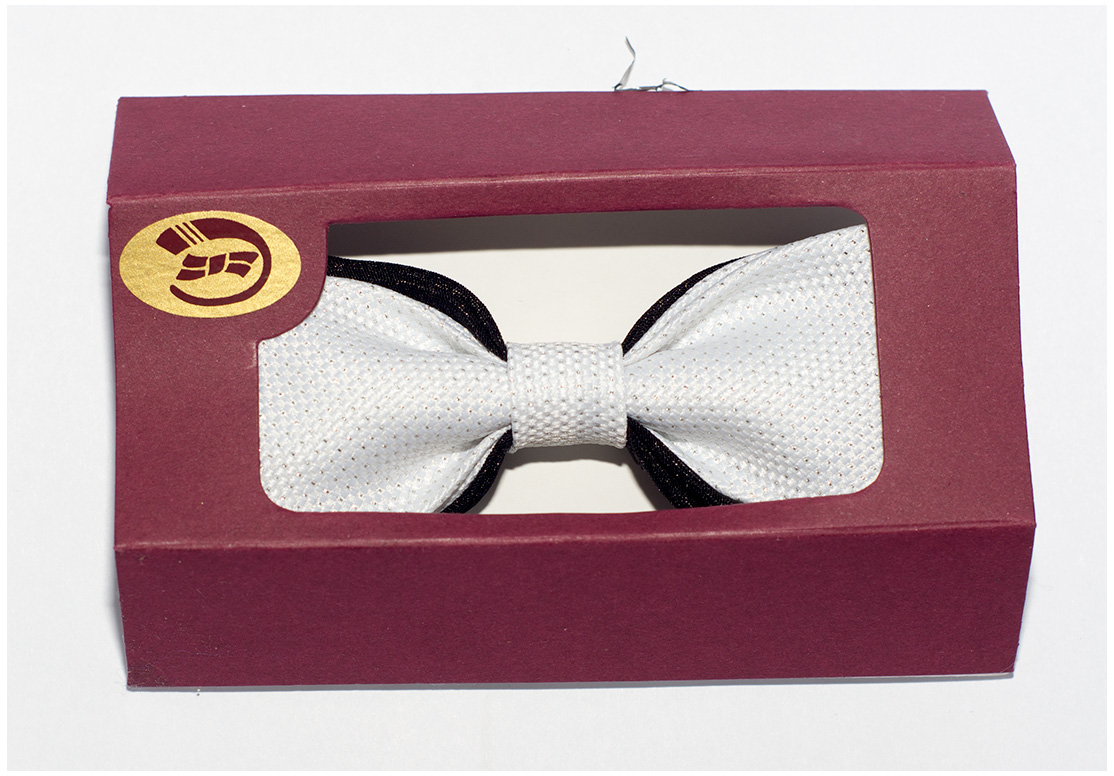 Это такая же классическая бабочка в коробочке, как галстук-бабочка мужской, только размером чуть поменьше.